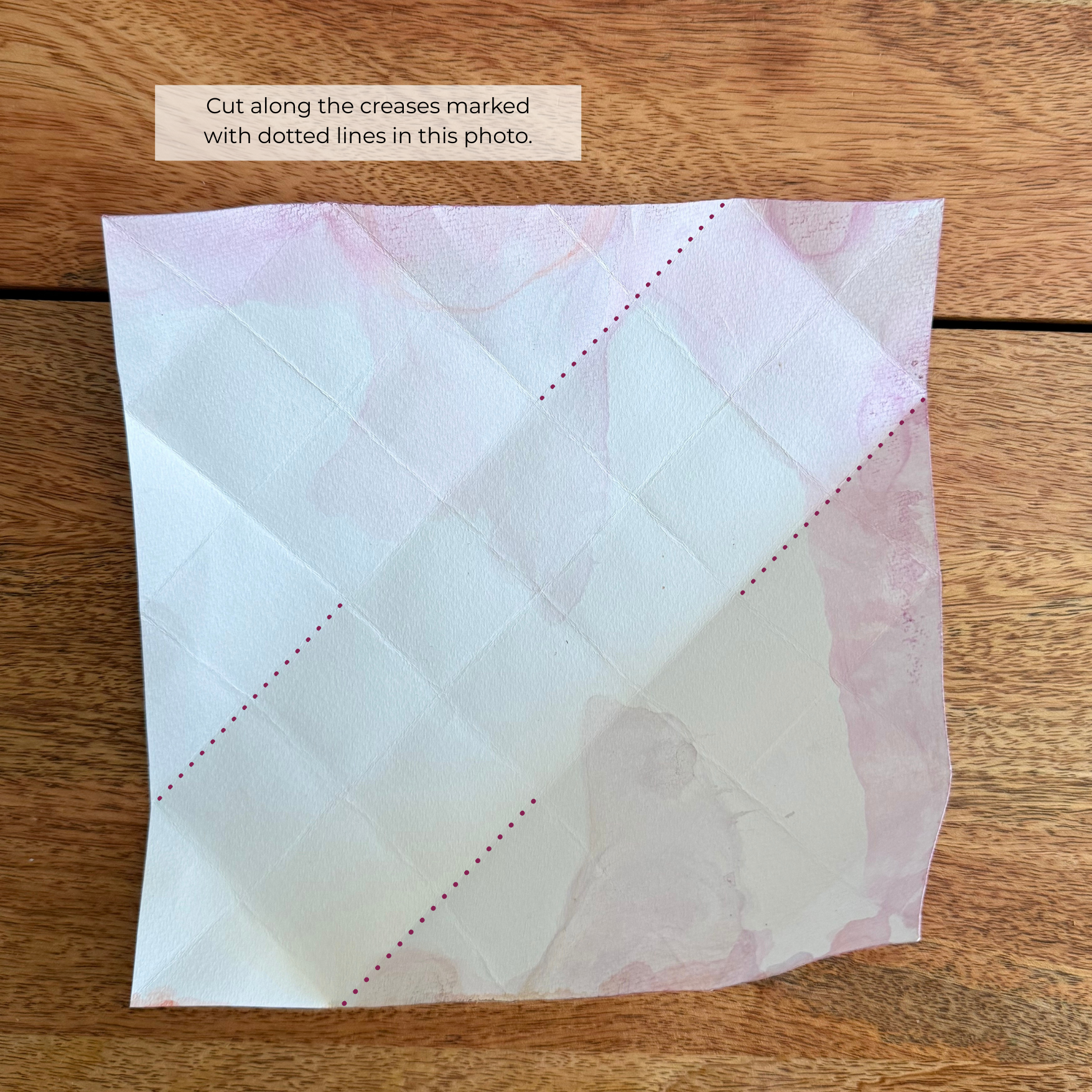 Cut along the edge of the paper to create a perfect square.